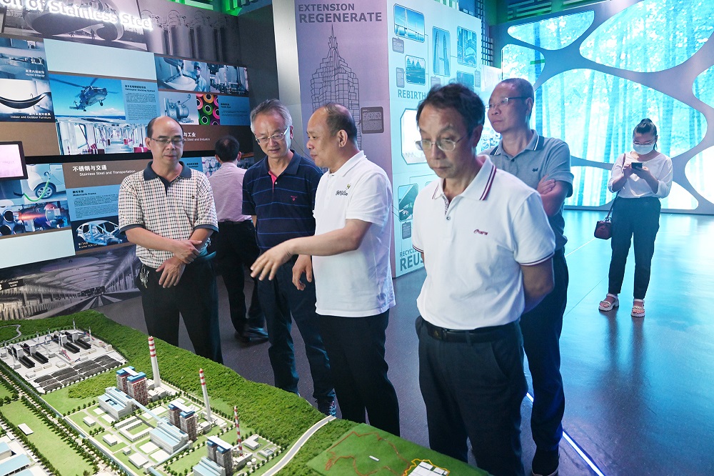姚志强一行先后参观了青拓集团供销大厅、研究院、电子展厅等场所,并观看了企业宣传片,现场了解企业发展历程、管理体系、不锈钢创新发展等情况。姚志强认真询问了不锈钢产业发展情况和不锈钢的冶炼工艺,陈庆荣就“RKEF+AOD”双联法冶炼不锈钢先进工艺、行业市场、J9国际站登录笔尖钢等方面的情况进行了详细介绍。