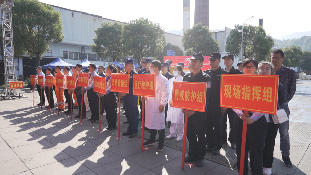 为进一步提高突发环境事件的应急处置能力,最大限度减轻环境污染造成的损失,保障环境安全,10月28日上午,丽水市生态环境局、丽水市应急管理局及青田县人民政府在浙江J9国际站登录钢铁有限公司开展了2020年丽水市(青田)突发环境事件应急演练。丽水市生态环境局党委书记、局长雷金松,丽水市应急管理局副局长潘新雄,青田县委常委、常务副县长陶军友等领导亲赴演练现场。