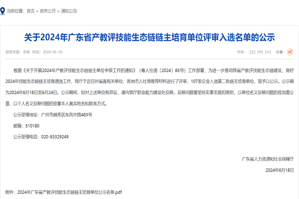 广青科技入选2024年广东省产教评技能生态链链主培育单位