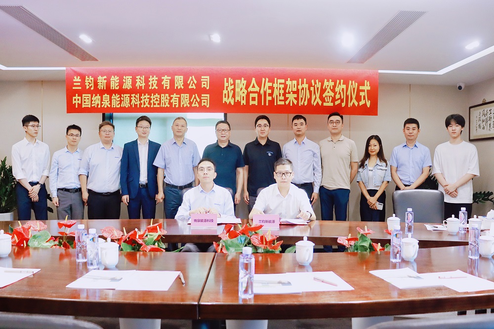 6月23日下午,兰钧新能源科技有限公司与中国纳泉能源科技控股有限公司在北京签署战略合作协议。