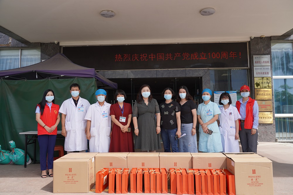 在阳江高新区人民医院,慰问组与医护人员进行了亲切交流,并代表公司向坚守防疫一线的广大医护人员表达敬意,感谢他们一直以来对公司的支持和帮助。