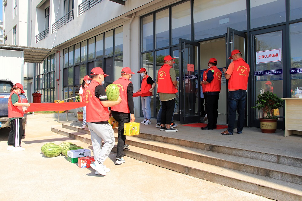 为关心关爱一线抗疫人员,展现公司的良好形象,7月13日下午,福建盟信公司副总经理孙朝晖带领公司志愿者们深入周宁县东门隔离点、方舱隔离场所、高速路口疫情防控检查点开展了慰问一线疫情防控工作人员活动。