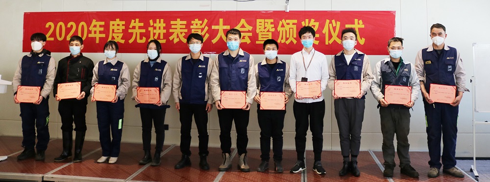 会上,张小珍宣读了2020年度先进表彰文件,张路遥、王跃、文德洪、蔡勇强为工作中表现优异的先进个人和先进集体进行了表彰,向获奖代表颁发了证书和奖金。