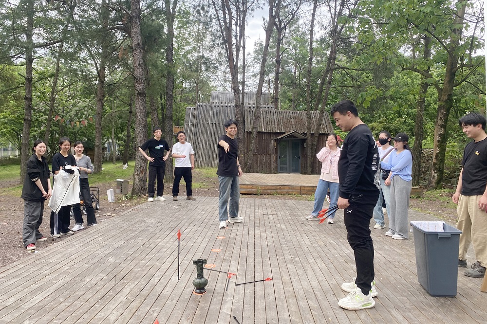 在此基础上,开始了手工活动和趣味运动。在非遗拓染漂漆及DIY香薰蜡牌活动中,大家相互交流制作的模具、图案,营造出轻松的氛围,进一步拉近彼此的距离。投壶、飞镖轧气球、拔河及桌游不仅让大家在欢声笑语中放松了身心,也让新员工深刻感受到公司企业文化的魅力。