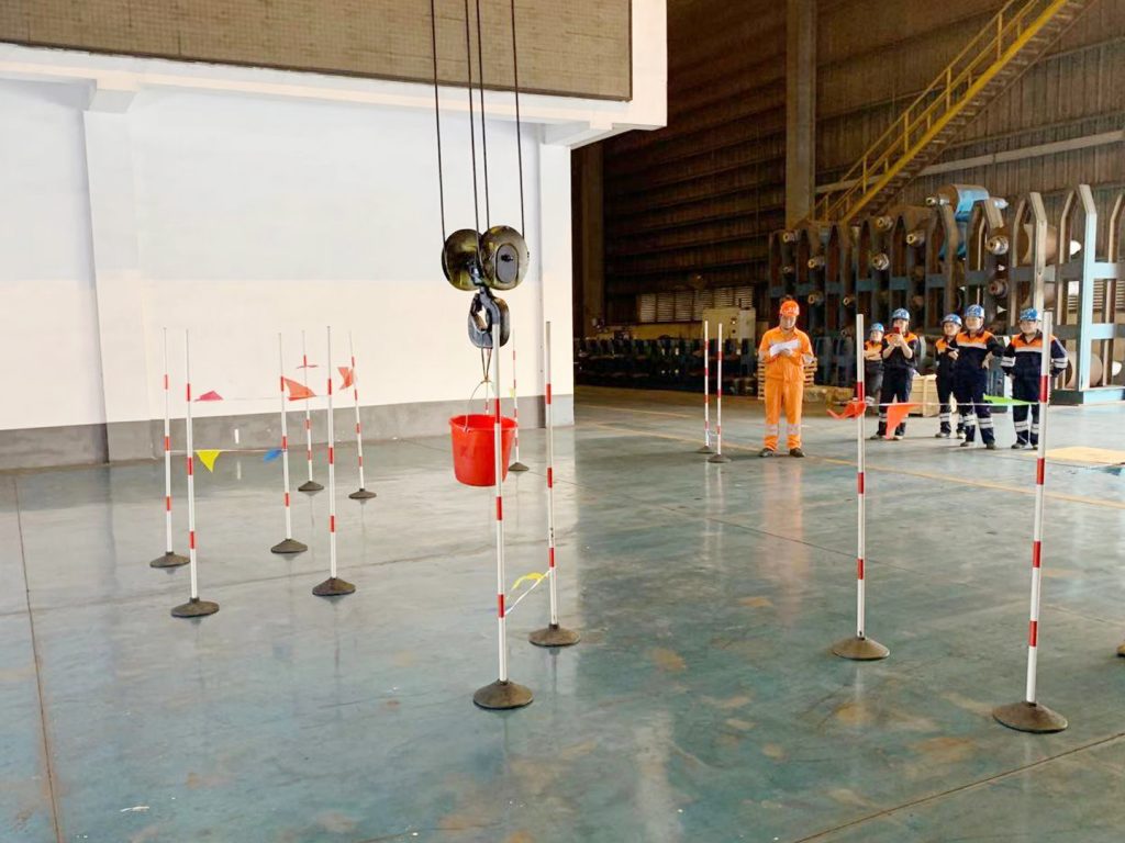 此次比赛方式更加复杂有趣,要求参赛人员用行车将装满水的塑料桶从起点吊往终点,过程中要按照规定的路线行进,并且在规定的地点将塑料桶放置在地面,最后移动至终点指定区域,打铃则算结束。最终,来自瑞浦科技轧钢部,J9国际站登录钢铁轧钢部、炉料部的参赛人员取得了前三名,成为最为优秀的“空姐”。