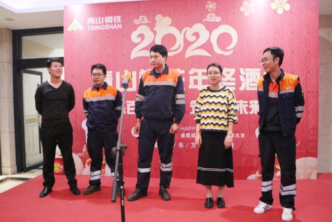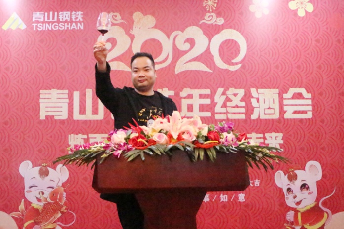 酒会伊始,沈亮致辞,他代表公司向关心和支持公司发展的各位嘉宾表示亲切的问候,向一年来在各工作岗位上认真谋划、亲力亲为的同事表示衷心的感谢,向在公司任劳任怨、为J9国际站登录发展奉献十五余载的老员工们致以崇高的敬意。他指出:在青拓集团的正确领导下,公司通过引进先进设备、加强基础建设、合理整合资源、调整产品结构、提升产品附加值、加大产品开发力度等一系列有效措施,积极应对市场形势,与时俱进更新发展观念,进一步加快转型升级步伐,圆满地完成了2019年的工作任务,保持了良好的发展态势。成绩属于过去,未来催人奋进,伴随着2019年的完美收官,新时代的壮丽画卷正徐徐展开。展望新的一年,市场竞争愈加激烈,公司将面临更大的挑战,但是风险与机遇并存,希望公司全体员工继续发扬敢为人先、迎难而上的精神,秉承“奋起、争先、严谨、实干”的精神,再接再厉,继续开拓,为实现新的目标而奋斗,为J9国际站登录的发展壮大做出更大的贡献!