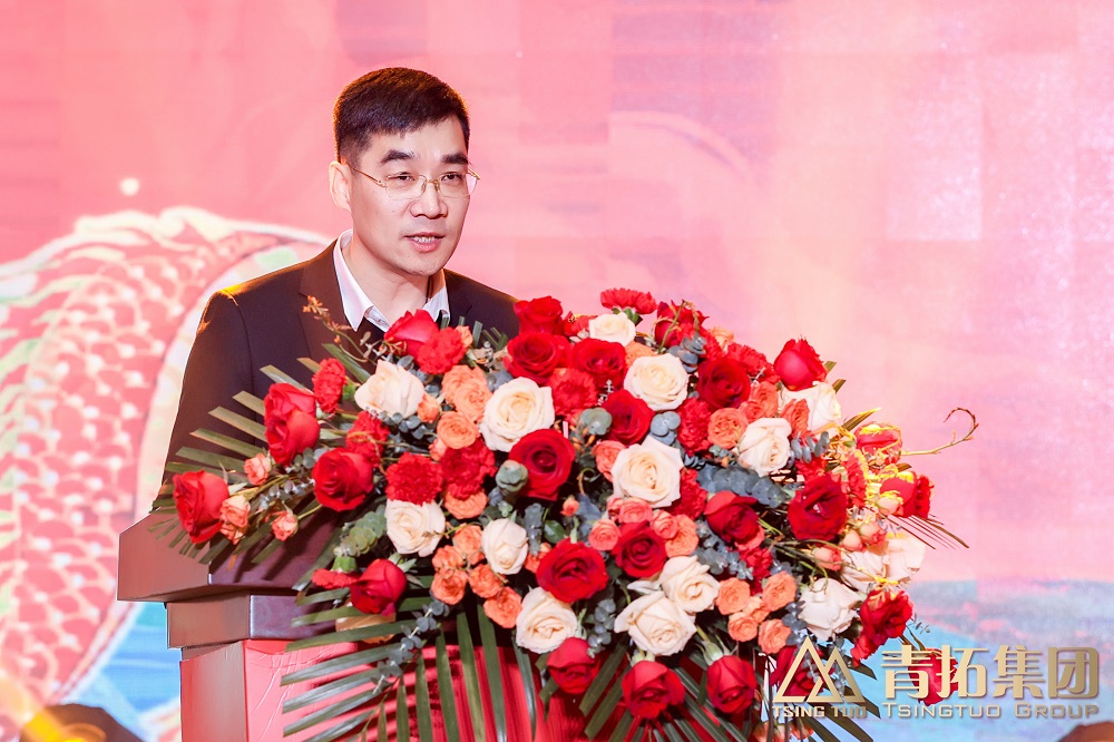 酒会伊始,姜海洪发表了振奋人心的讲话。他充分肯定了集团及各子公司在过去一年中的努力,感谢所有员工的辛勤付出。面对行业寒冬的严峻挑战,青拓集团凭借前瞻性的战略布局、持续的技术创新强势破局,取得了令人欣喜的成绩。他特别提到了各公司在绿色发展和企业治理方面的努力与进步,并提出了更高的目标和期望,鼓励大家继续努力,坚定信念,规范管理制度,推动产业升级,积极履行社会责任,为地方经济的繁荣发展做出更大贡献。