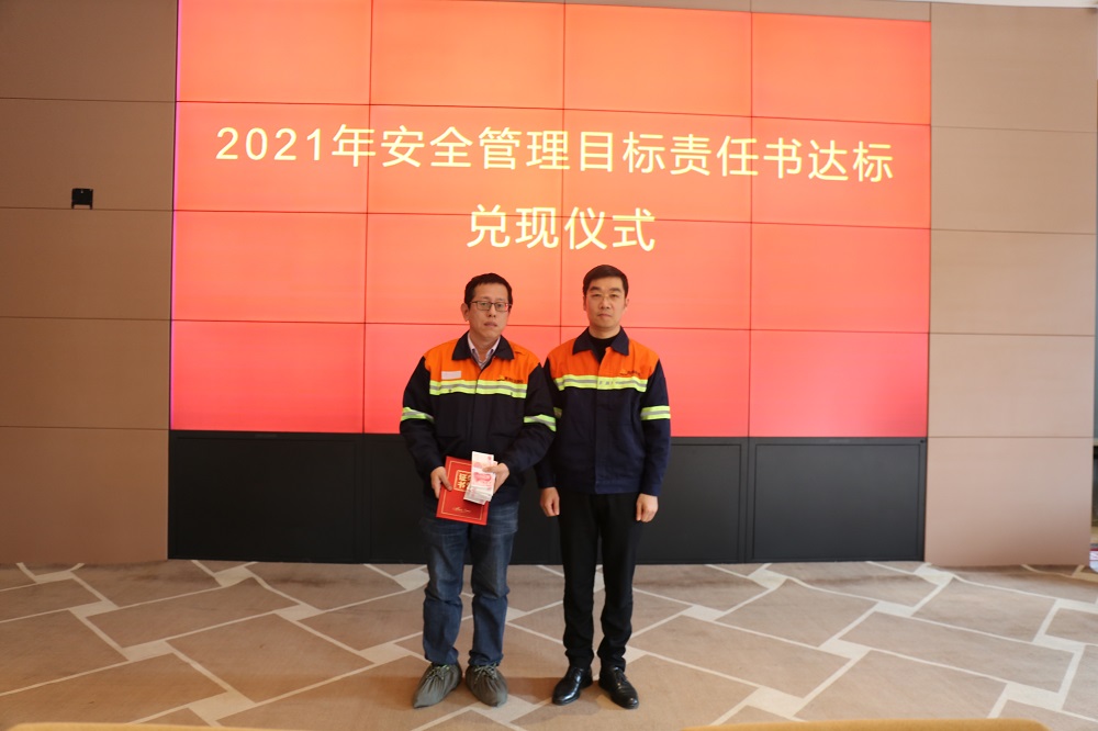 姜海洪为2021年度安全管理目标达标的9个单位进行了颁奖,并与集团直属部门、各子公司签订了2022年安全管理目标责任书。