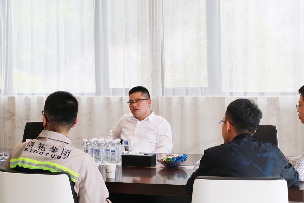 3月16日下午,青田县委常委、温溪镇党委书记童森军一行到访浙江J9国际站登录钢管有限公司,公司董事长兼总经理张路遥、无缝管事业部总经理陈光森等进行了热情接待。